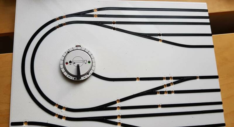 Het is schematisch, met extra ruimte tussen de sporen zodat de schakelaars passen